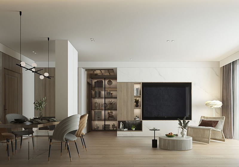 • 145㎡簡約風三人居 無主燈設(shè)計+仿石材真get